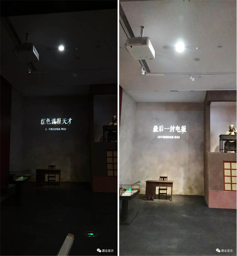 此外展廳的三樓:研修體驗(yàn)教育和黨員活動(dòng)中心也都各用一臺(tái)4500流明激光大變焦投影搭配定制鏡頭及電動(dòng)遙控幕。