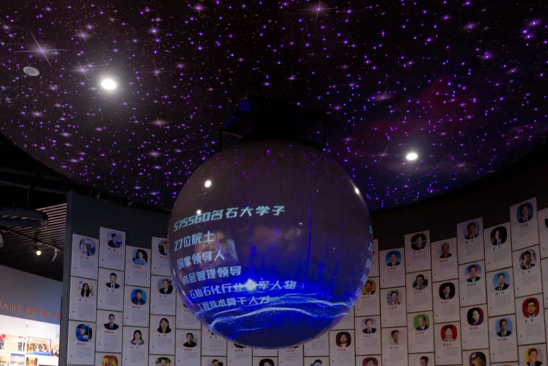 校史館建筑面積3490平方米,由前廳、序廳、序章、編年體展區(qū)、專題展區(qū)、愿景廳、藝術(shù)館等部分組成。館內(nèi)展示綜合采用現(xiàn)代信息技術(shù)和視覺美學(xué),通過圖文、實(shí)物、多媒體、虛擬影像、立體造型、場景還原等多種方式,集中展現(xiàn)了學(xué)校六十八年來與共和國發(fā)展共命運(yùn)、與祖國石油工業(yè)同呼吸、與石油高等教育共奮進(jìn)的光輝歷程,體現(xiàn)了學(xué)校從首都北京的紅色激情到黃河岸邊的金色豪邁、再到逐夢(mèng)青島的藍(lán)色暢想,一代代石大人以服務(wù)國家能源戰(zhàn)略為己任,為黨忠誠、為國育才所書寫的奮斗詩篇。