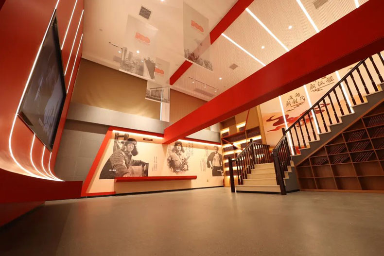 在主題色彩濃郁的空間中,回顧雷鋒、焦裕祿等人的先進(jìn)事跡;巧用層高優(yōu)勢(shì),渲染時(shí)代氛圍,凸顯日新月異的進(jìn)步。
