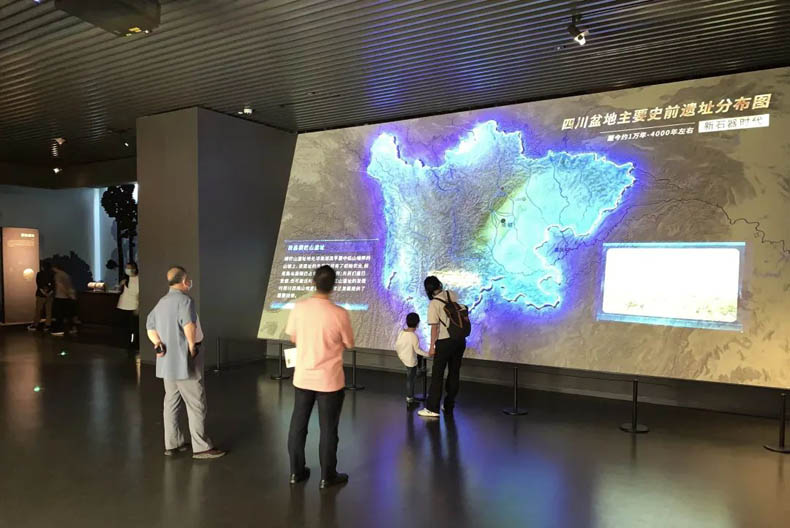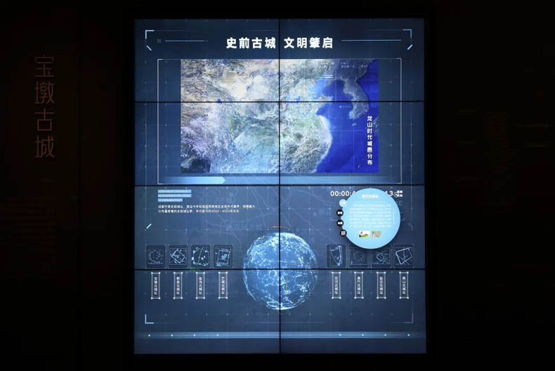 展廳通過(guò)大型互動(dòng)墻對(duì)寶墩古城8個(gè)古城遺址的信息查詢,使觀眾能夠了解其各自的特點(diǎn)。