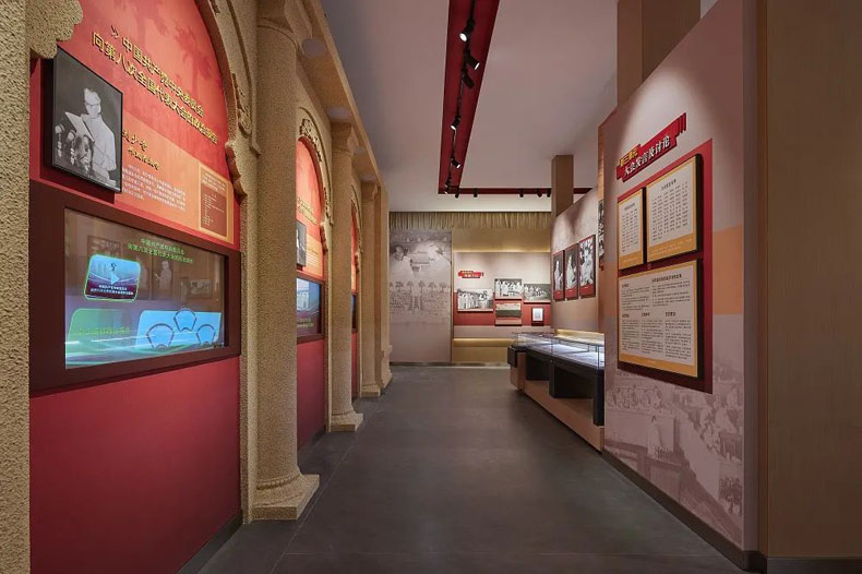 序廳設(shè)計時,如何體現(xiàn)與八大地位相適應(yīng)的莊重宏偉氣勢,專家與創(chuàng)作團(tuán)隊反復(fù)研究,最后確定目前方案:用一塊雕刻前言的臥碑象征社會主義的基石,兩邊浮雕表現(xiàn)八大主席臺場景,兩側(cè)各四面紅旗代表中國共產(chǎn)黨的第八次全國代表大會,刻有展覽主題的高大石碑寓意從八大開啟的中國社會主義建設(shè)道路越走越開闊,走向更加光明的未來。在籌展過程中,中共中央辦公廳、中央黨史和文獻(xiàn)研究院、中央檔案館等單位都給予了大力的支持。