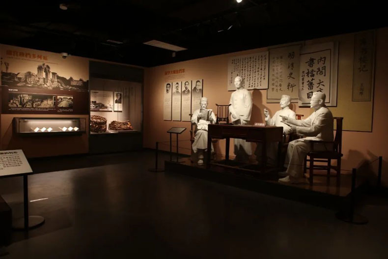 展覽設(shè)計(jì)立足展品本位,深入發(fā)掘明清檔案文化內(nèi)涵,突出一史館館藏特色,向觀眾揭示從皇家秘檔到國家文化遺產(chǎn)的內(nèi)在邏輯,以文獻(xiàn)為骨、歷史為肉、文明為魂。基本陳列由五個(gè)部分組成,按順時(shí)針參觀流線,依序?yàn)?明朝掠影、清朝肇建、康乾盛世、帝國秋涼、抗?fàn)幥笏鳌?/p>